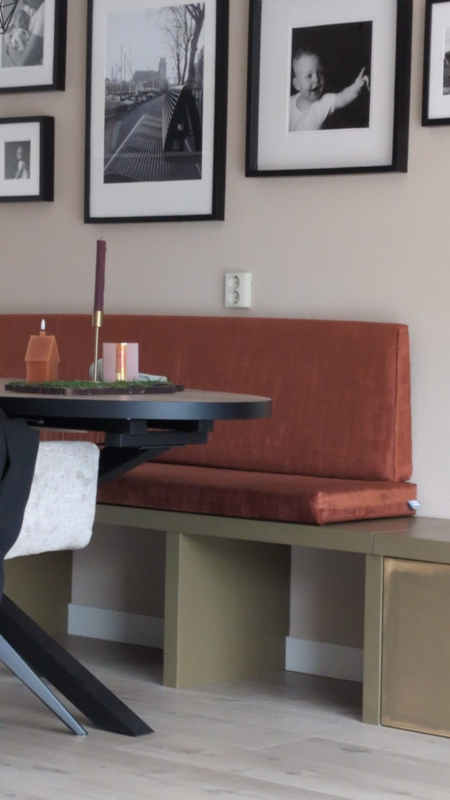 Kussens eetkamerbank velvet structuur roest