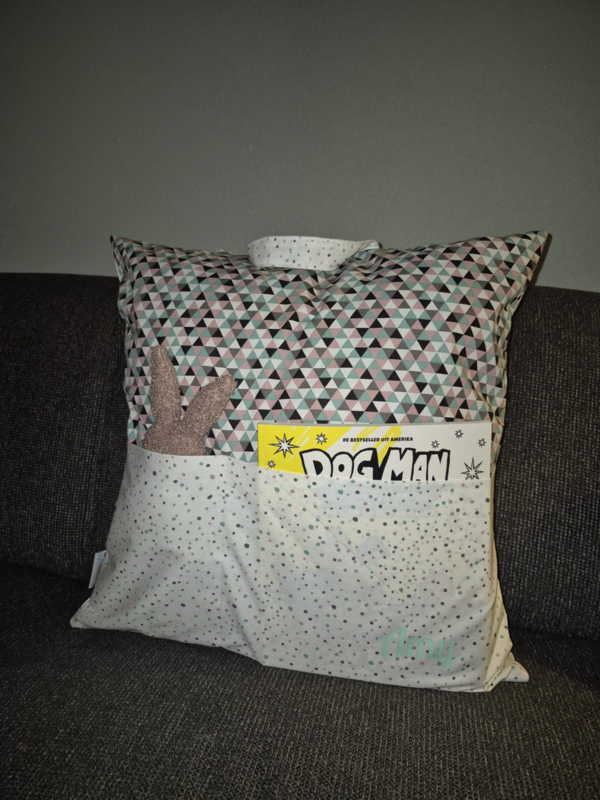 OverzichtEen super leuk leeskussen met naam naar keuze. Dit kussen heeft 2 vakken aan de voorkant, 1 voor je favoriete boek en 1 voor een knuffeltje of iets lekkers. Het kussen heeft ook een handvat waardoor je het makkelijk mee kunt nemen, zo heb je altijd een heerlijke zacht plekje voor handen.