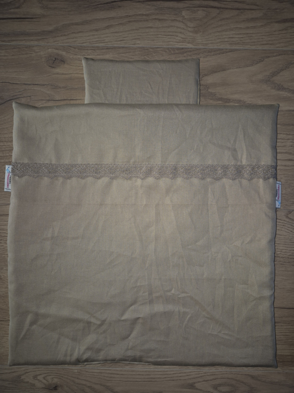 Op het dekbedje een kantje in dezelfde kleur als de gekozen katoen.